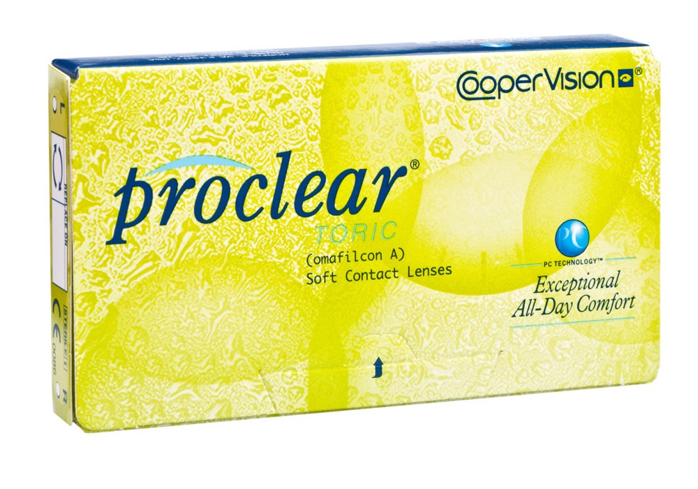 Proclear® € 20,00 (confezione da 3pz) € 40,00 (confezione da 6pz) Lenti a contatto mensili. Le lenti a contatto Proclear Toric sono realizzate con un PC Technology® che è in grado di mantenere le lenti idratate e confortevoli anche dopo lunghi utilizzi, in quanto composto di molecole di fosforilcolina, una sostanza in grado di attrarre l'acqua mantenendo le lenti confortevoli anche dopo 12 ore di usura. Su richiesta è possibile costruire da +10.50 a +20.00 e da -10.50 a -20.00 Rb 8.60mm - Dia 14.60mm